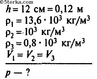 В цилиндрический сосуд налиты ртуть , вода и керосин. Определите общее давление, которое оказывают жидкости на дно сосуда, если обьемы всех жидкостейравны, а верхний уровень керосина находится на высоте 139мм от дна сосуда. принятть g=10н/кг Ответ дать в кпа