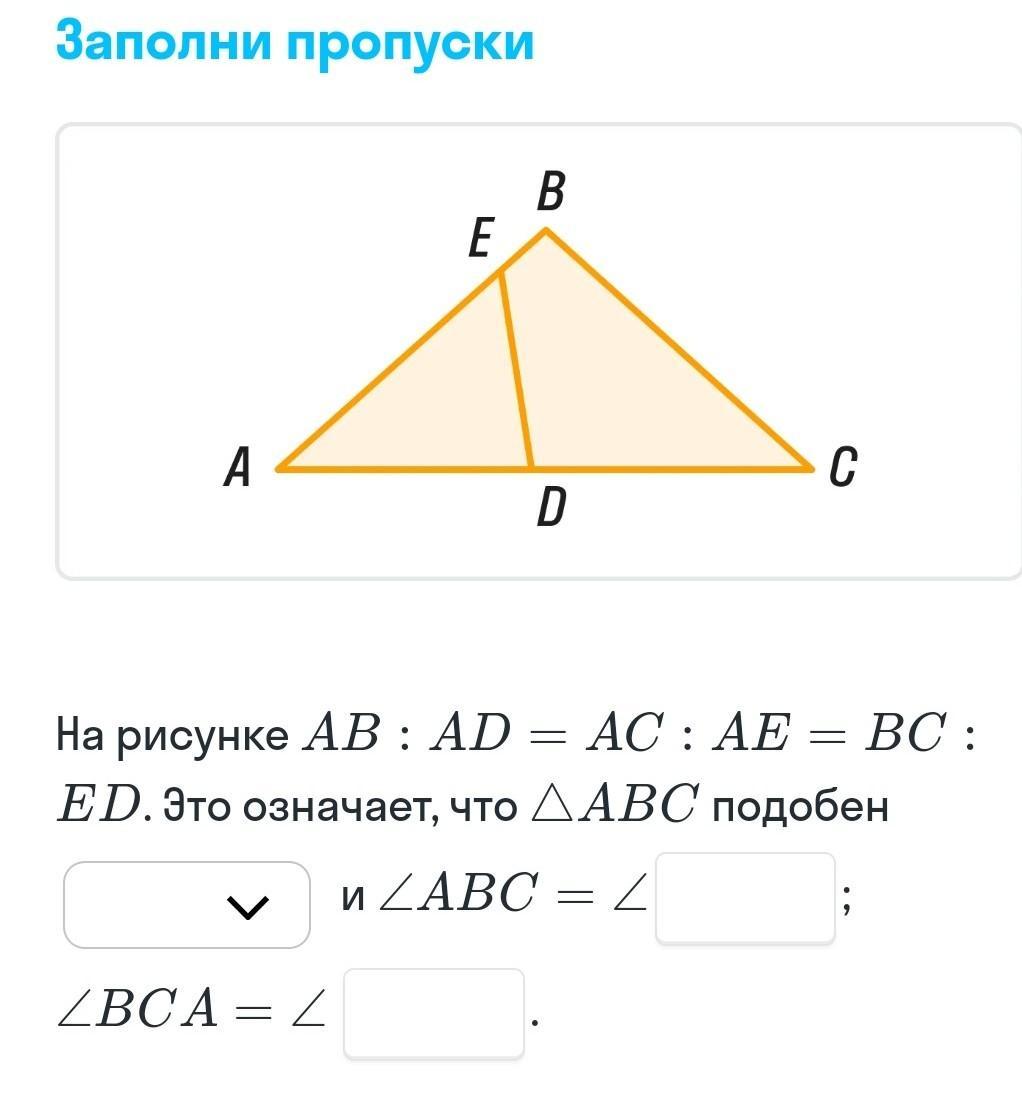АВС подобен треугольнику АДЕ и угол АВС = углу АДЕ