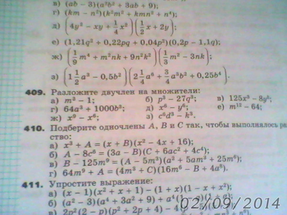 409. (m-1)(m²+m+1) (p-3q)(p²+3pq+9q²) (5x-2y)(25x²+10xy+4y²)