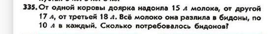 В каждый бидон разлили по 10 л, следовательно 50/10=5 бидонов.