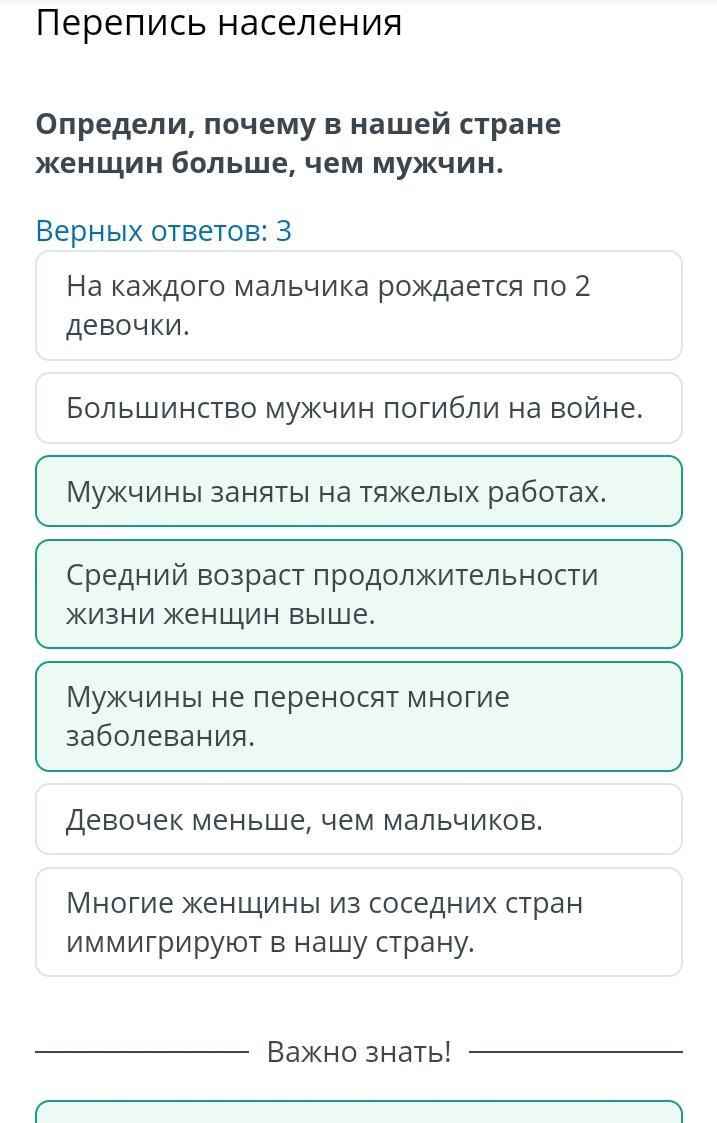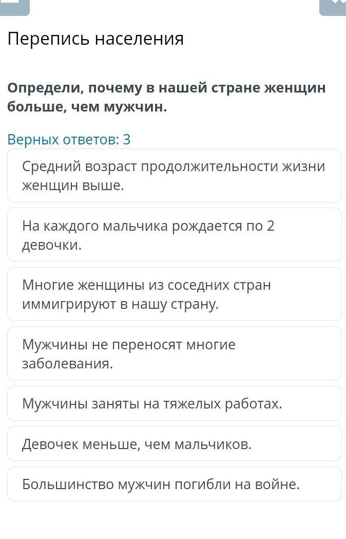 Перепись населения Определи, почему в нашей стране женщин больше, чем мужчин.