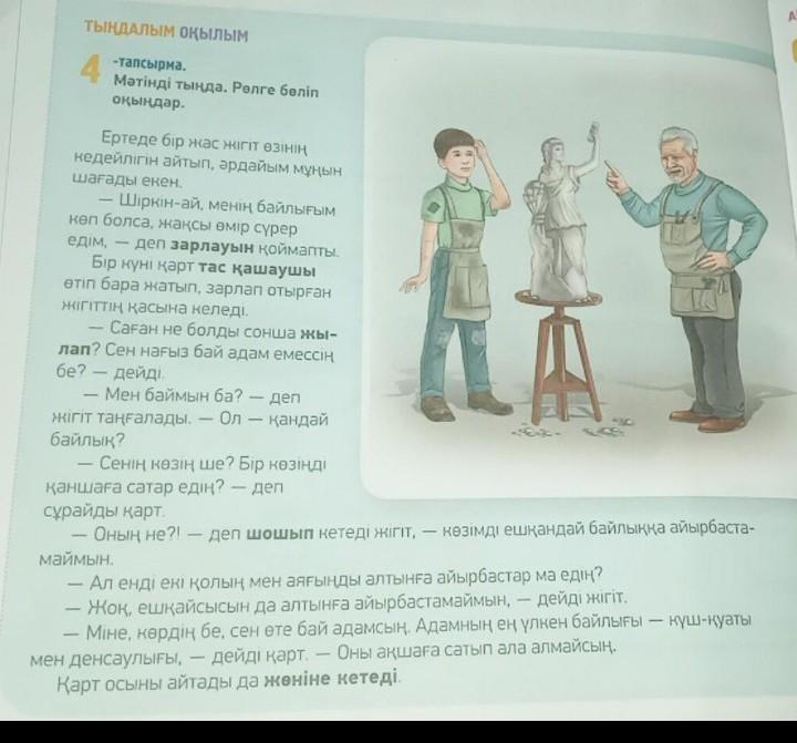 жігіт жылай беріп өзінің кедейлігін айтады. Тас қашаушы ата келіп одан НЕГЕ ЖЫЛАП ОТЫРСЫҢ?-дейді Жігіт өзінің кедей екенін айтады ата оған сен көзіңді, қолыңды, аяғыңды алтынға сатар медің дейді. Жігіт шошып кетіп жо-жоқ дейді. Ата мінекей адамның ең үлкен байлығы- күш қуат деп жөніне кетеді. Одан бері жігіт өзінің бай екенін біледі
