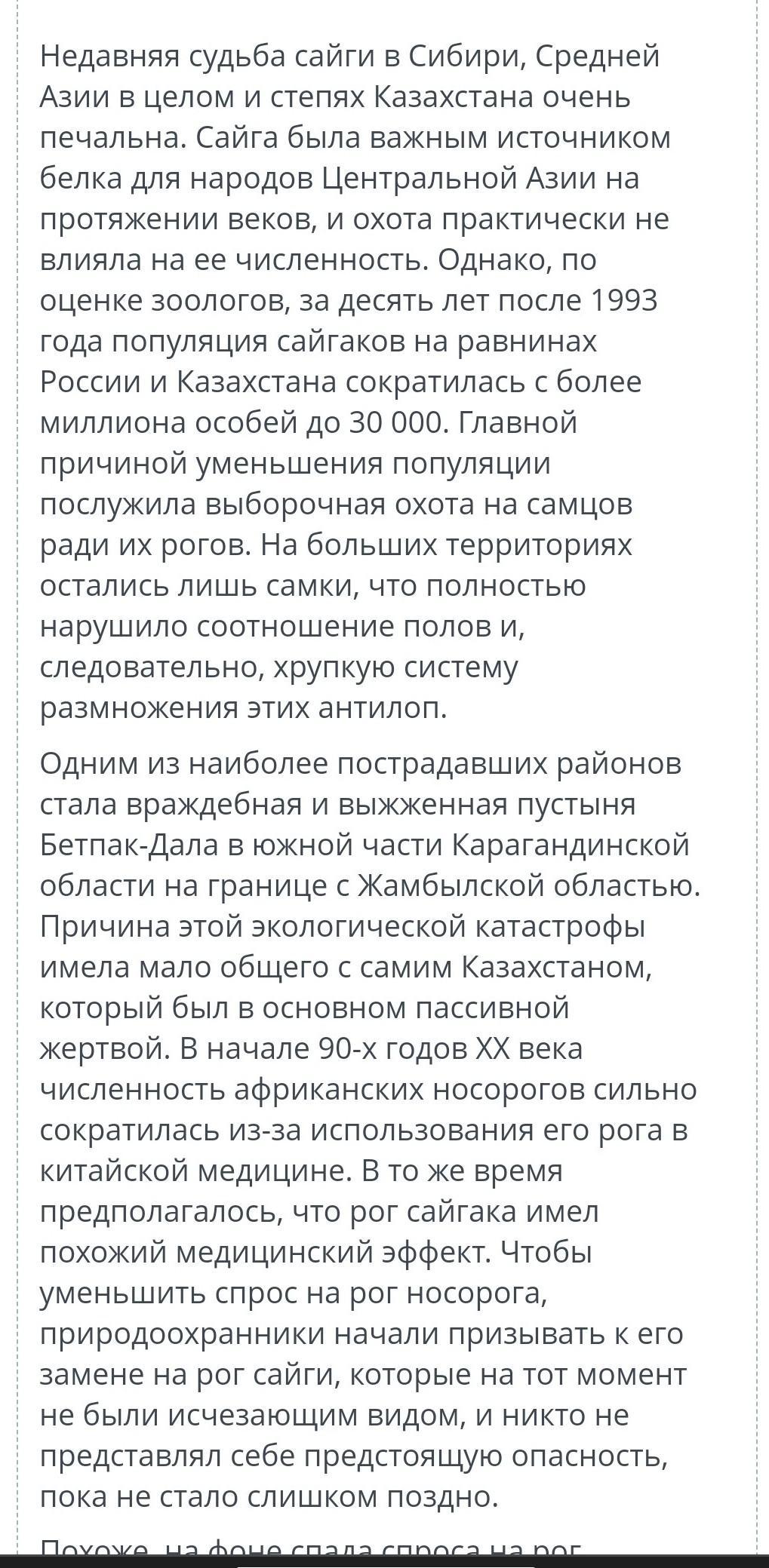 Прочитай текст. О чем не говорится в тексте? об уходе и разведении сайги о причинах сокращения сайги о влиянии человека на популяцию сайги