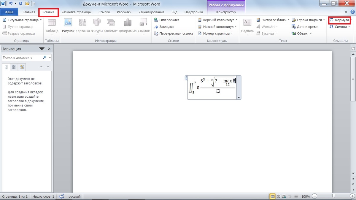 Заходишь в Word => Вставка=>Формула. И из конструктора делаешь нужную тебе формулу.