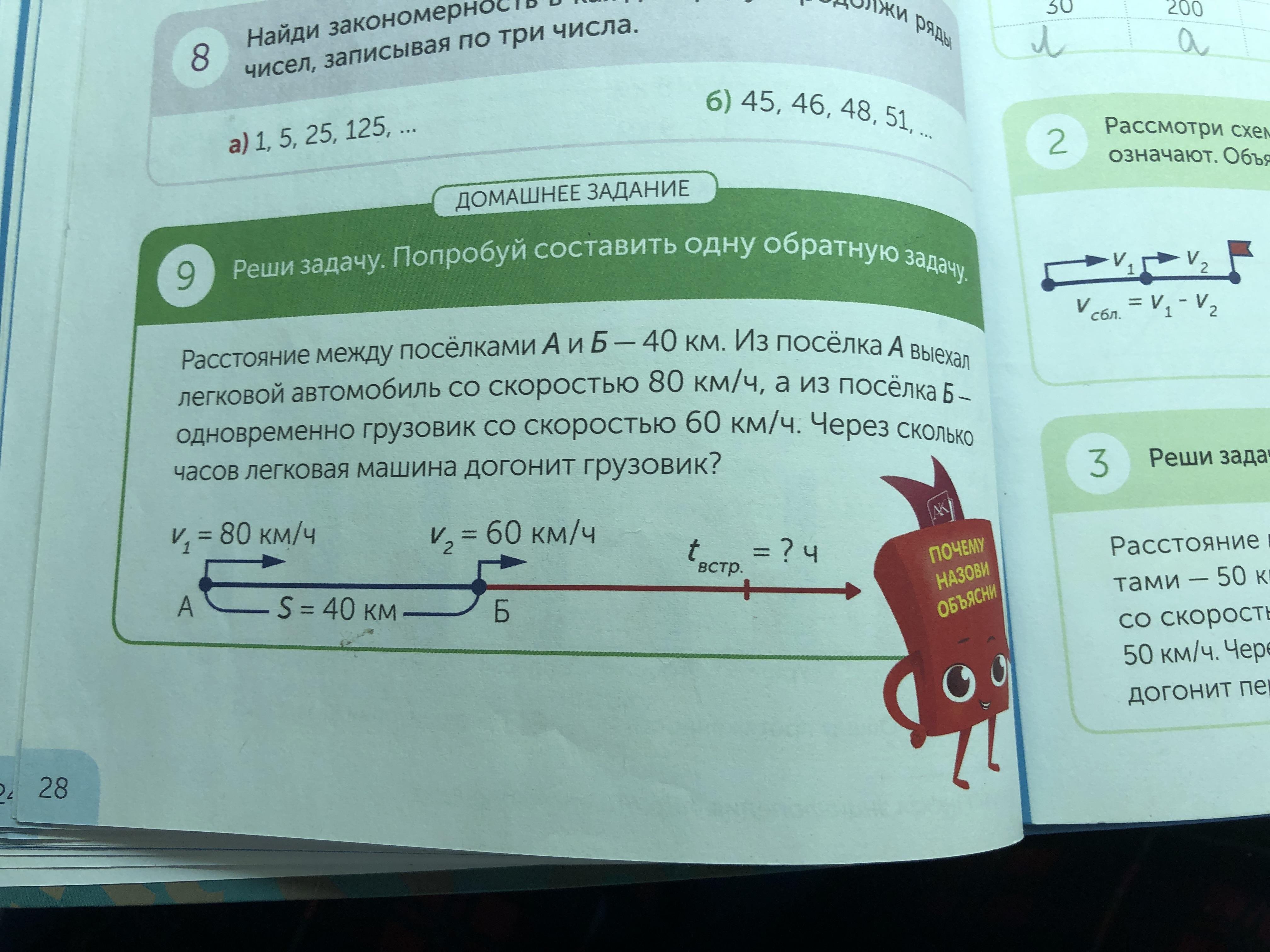 Расстояние между посёлками А и Б - 40 км. Из посёлка А выехал легковой автомобиль со скоростью 80 км/ч, а из посёлка Б - одновременно грузовик со скоростью 60 км/ч. Через сколько часов легковая машина догонит грузовик?