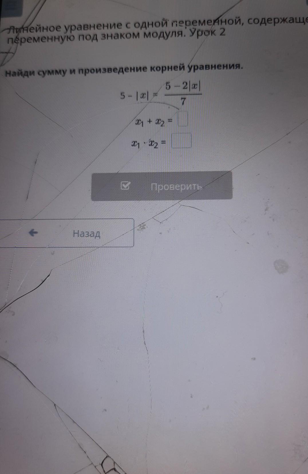 -мейное уравнение с одной переменной, содержащее переменную под знаком модуля. Урок 2 Найди сумму и произведение корней уравнения. 5-2 I 5-3 = 7 I + I2 = II2 = Проверить