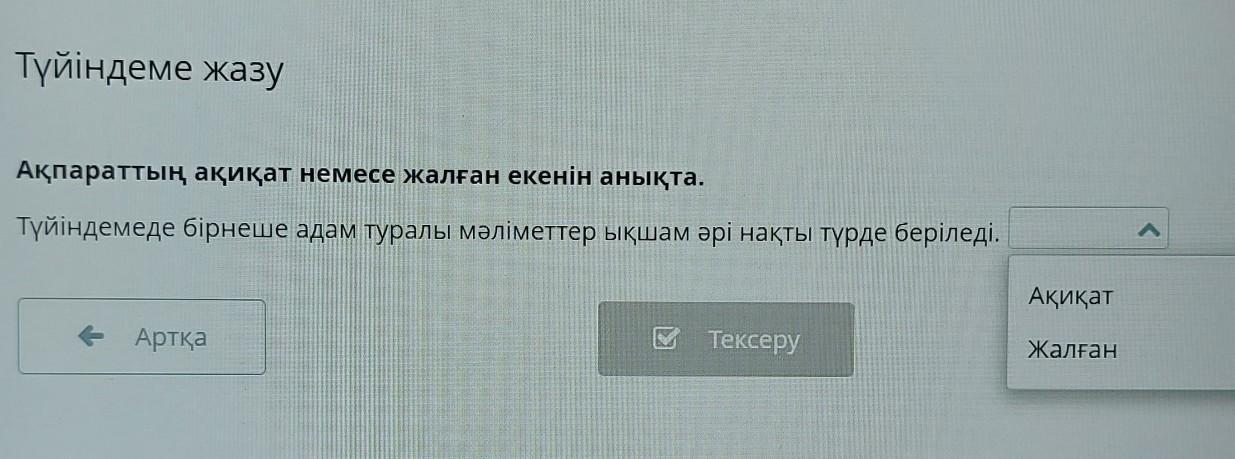 түйіндеме бірнеше адам туралы мәліметтер ықшам әрі нақты түрде беріледі: ақиқат/жалған