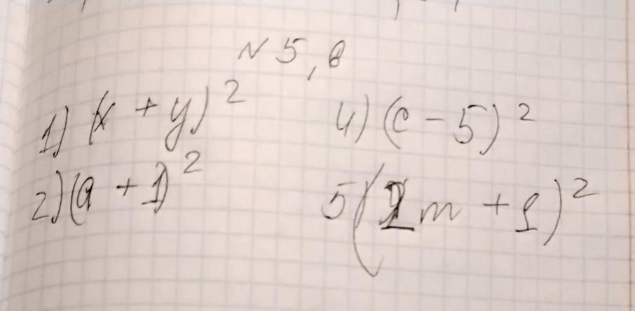 1)(x+y)2. 2)(a+1)2. 4)(c-5)2. 5)(2m+1)2