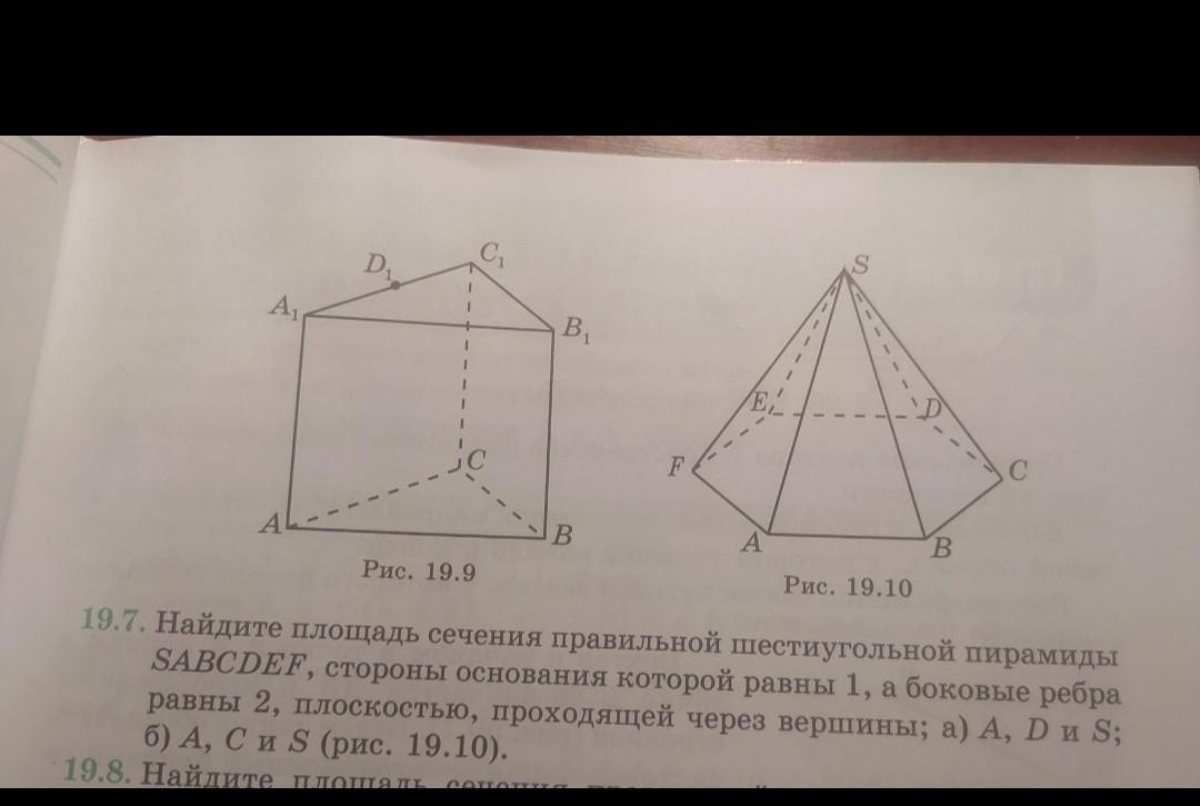 19.7. найдите площадь сечения правильной шестиугольной пирамиды