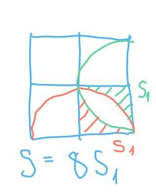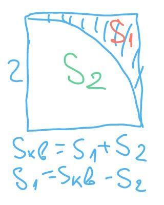 S1=2²-¼π•2²=4(1-¼π)=4-π