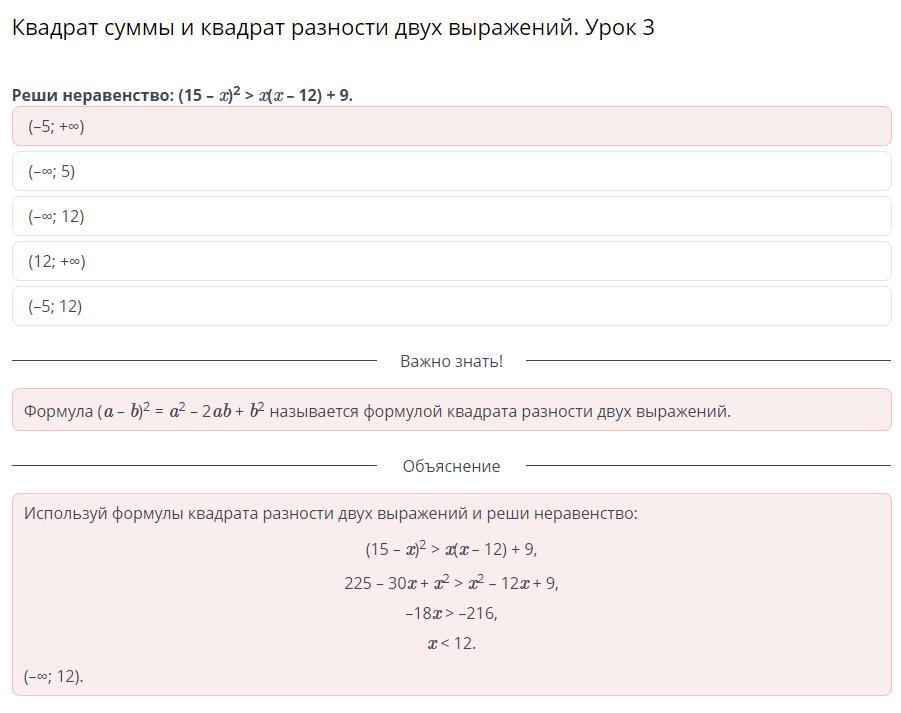 Теңсіздікті шеш: (15 - 2 > II – 12)