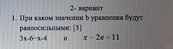 при каком значение b уравнения будут равносильными:[3] 3x-6=x-4 и. x-2в=11 СРОЧНО НАДО СРОЧНО