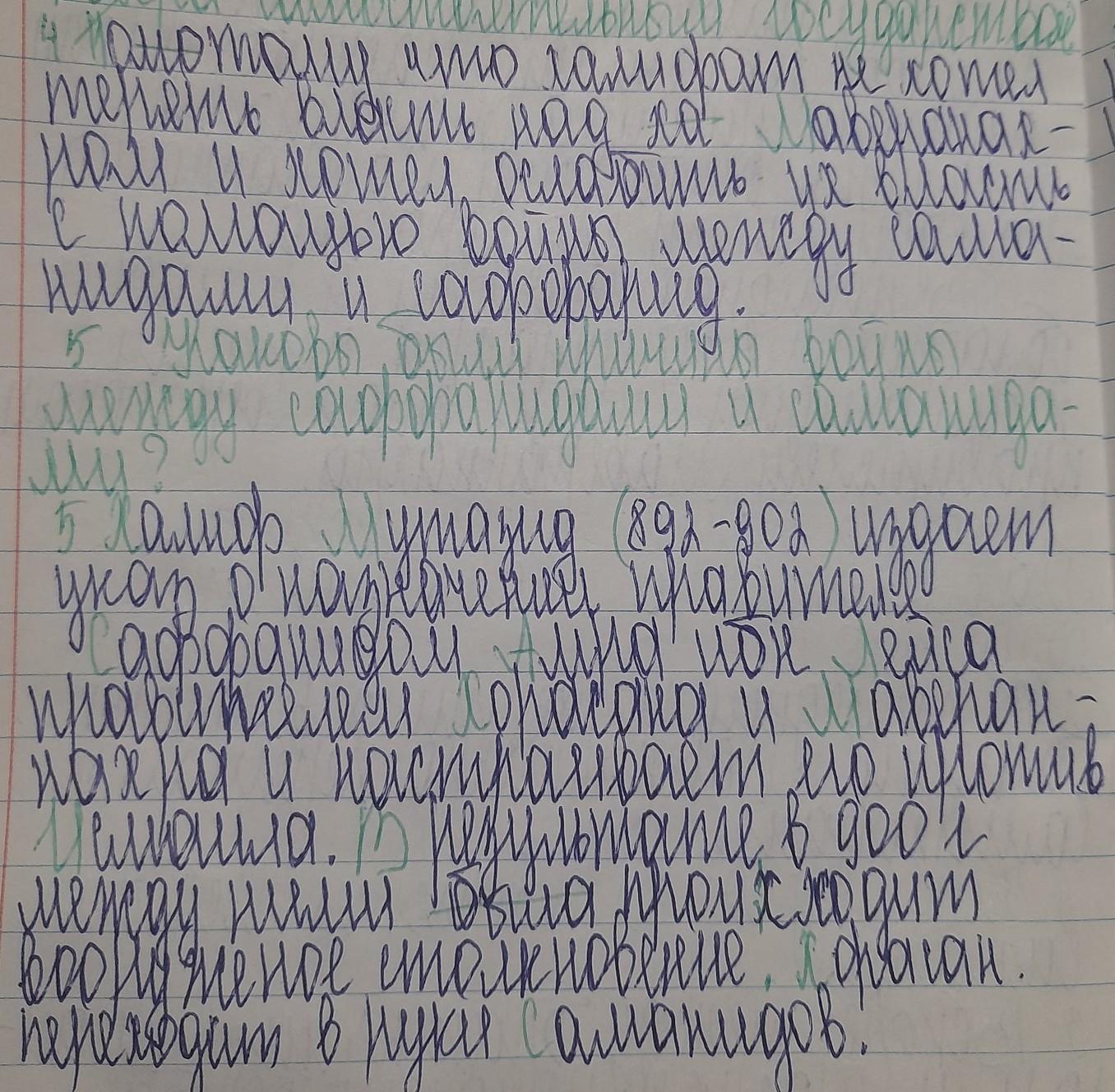1) В |x в произошли изменения в политической жизни Мавераннахра. Государством первоначально правил Нух, затем Ахмад. Каждый при правлении чеканил монеты со своим именем. После смерти Ахмада (865) его сын Наср объявляет Самарканд столицей. Он пытается оъбединить все области Мавераннахра и отделить от его Хорасана. В последней четверти |x в многие области Мавераннахра перешли к саманидам. Наср стал верховным правителем Мавераннахра.