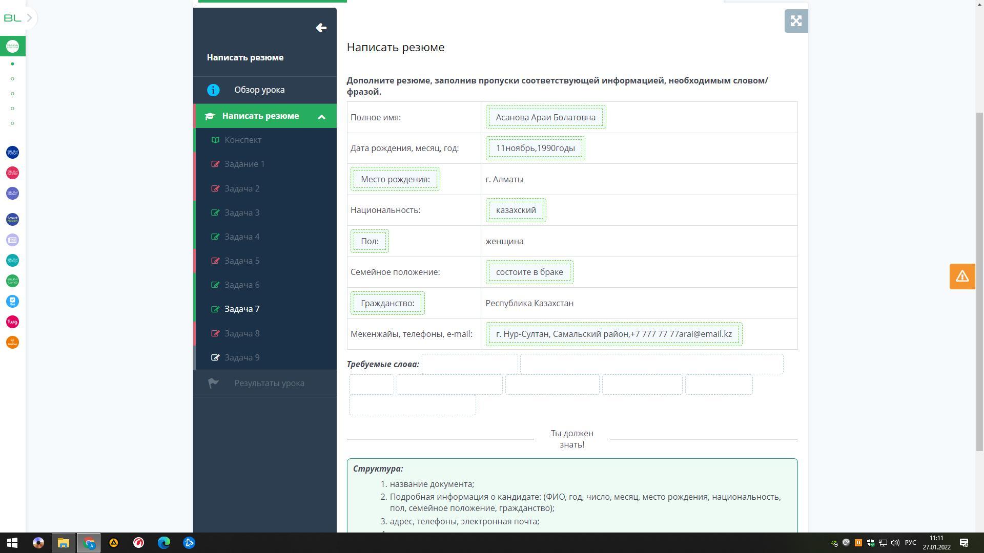 Бос орындарға тиісті ақпаратты, қажетті сөз/сөз тіркесін қойып, түйіндемені аяқта.