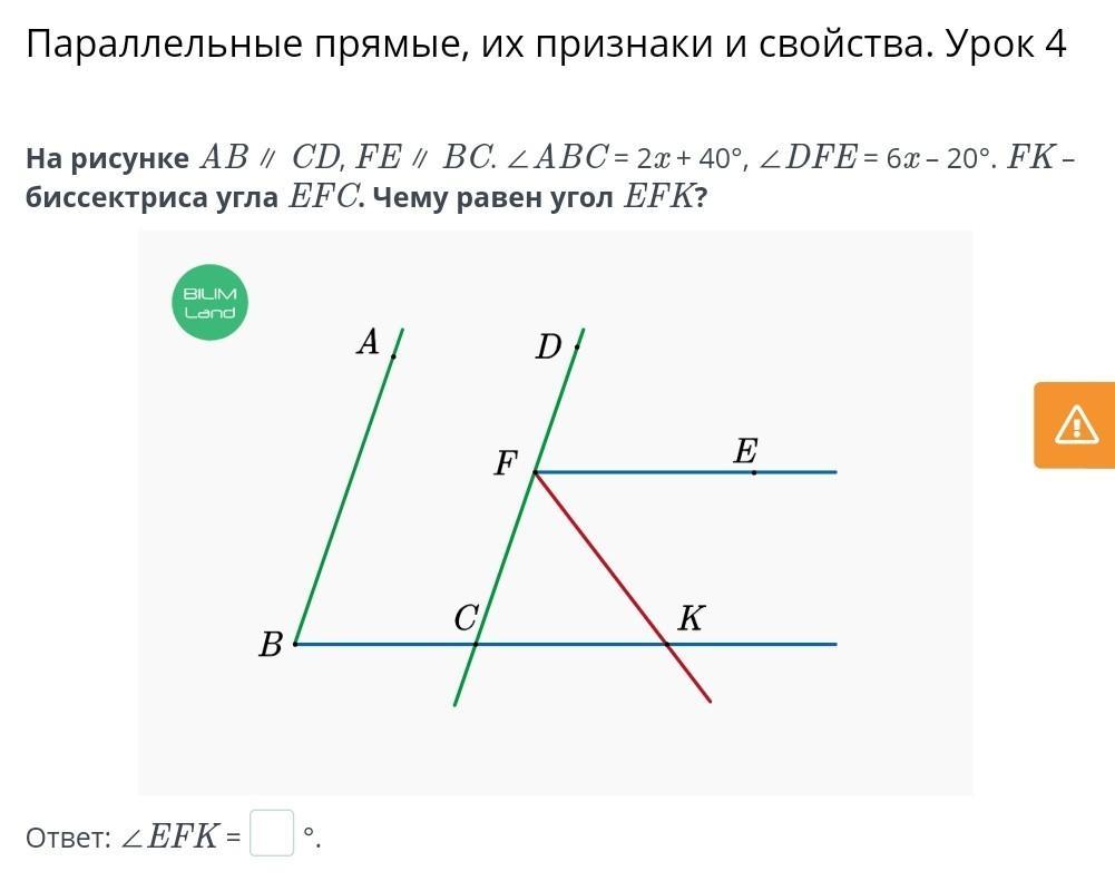 <DCK=<DFE,как соответственные при FE || BK и секущей DC