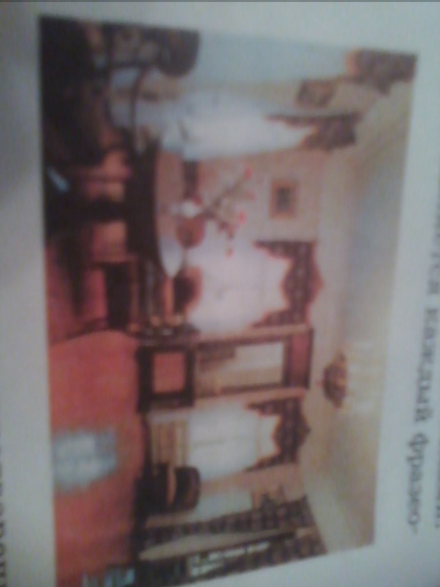 Дом был красивый, оригинальный. Окна светлые , белые. Пол красный, белый.