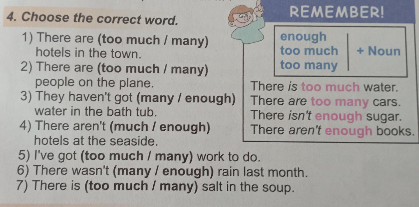 3) enough (many не подходит, так как water - неисчисляемое существительное) ;