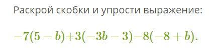-7(5-b)+3(-3b-3)-8(-8+b)=-7*5-7*(-b)+3*(-3b)+3*(-3)-8*(-8)-8*b=-35+7b-9b-9+64-8b=-35-9+64-8b+7b-9b=20-10b