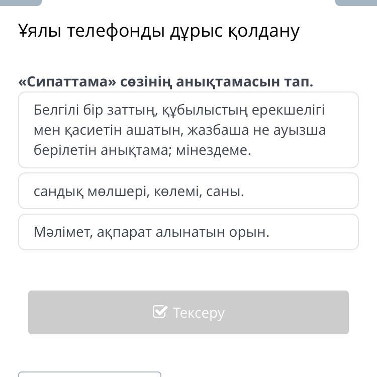 Сипаттама - белгілі бір заттың , құбылыстың ерекшелігі мен қасиетін ашатын, жазбаша не ауызша берілетін анықтама, мінездеме