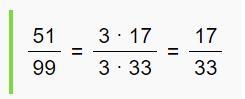 51/99 сокращаем на 3 и получаем 17/33.