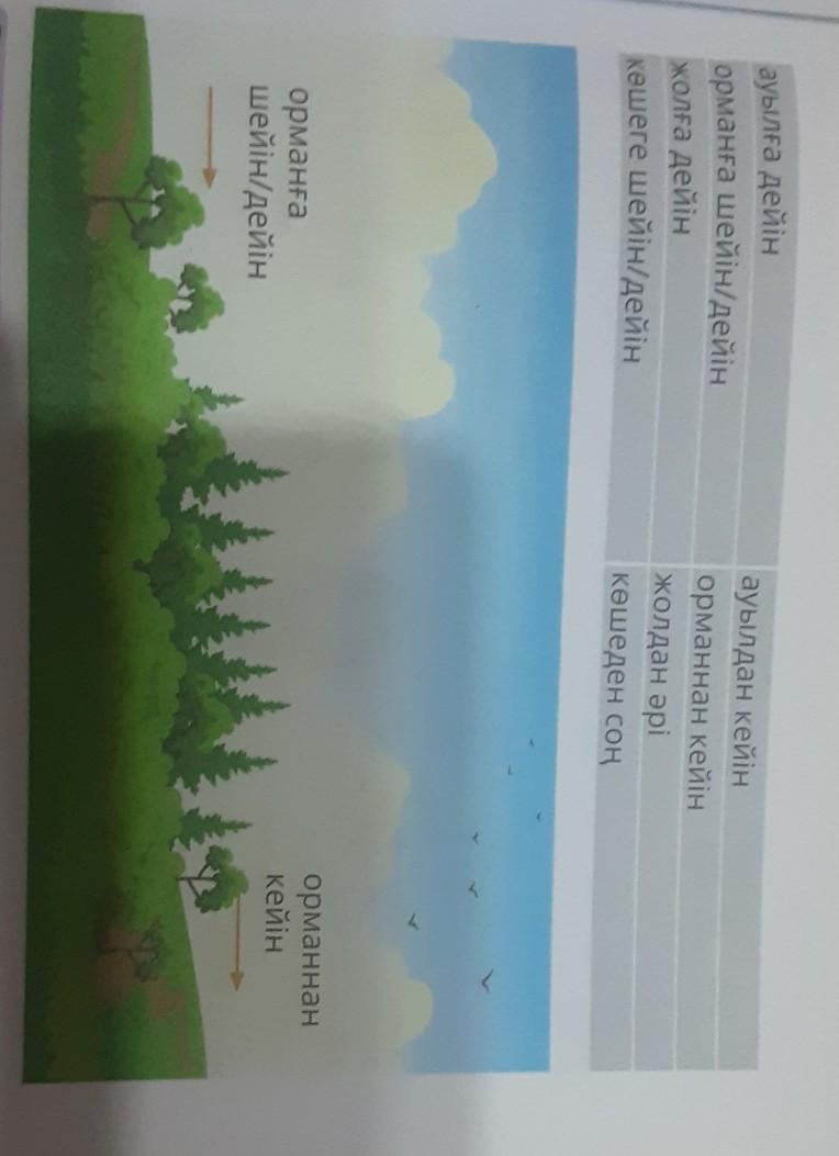Кестедегі сөз тіркестерін оқы. Суретке қарап, мағынасын түсіндір.