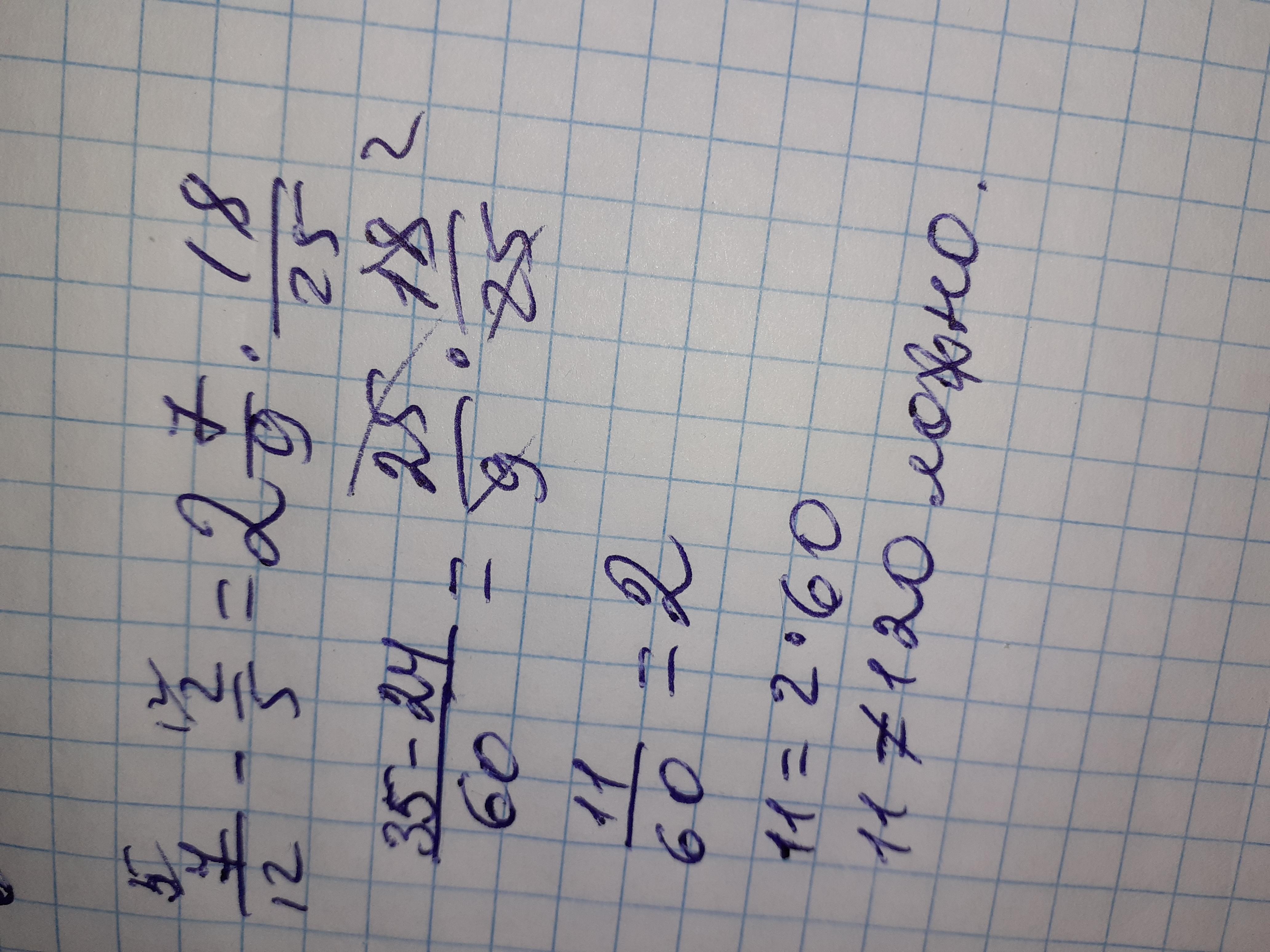 7/12-2/5=(35-24)/60=11/60