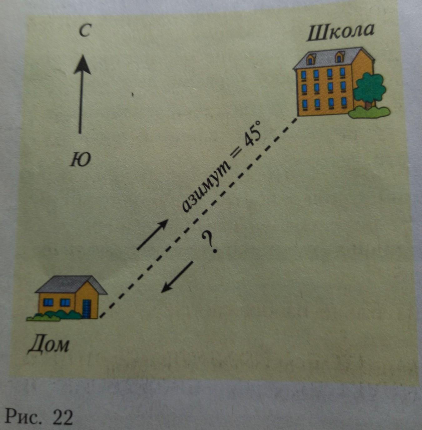 Рассмотрите рисунок 22 В каком направлении вы будете возвращаться домой если в школу вы шли по азимуту 45 градусов
