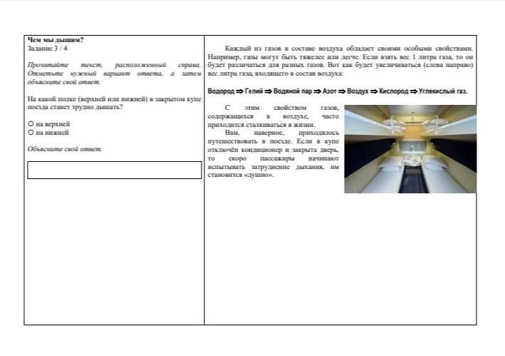 В закрытом купе поезда станет трудно дышать на нижней полке, так как углекислый газ, который будет активно выделяться при дыхании, являясь тяжелее кислорода, по законам притяжения будет концентрироваться внизу