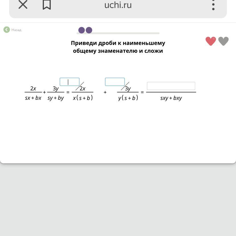 2ху+3ух/ sxy+bxy= 5xy/sxy+bxy=5/s+b