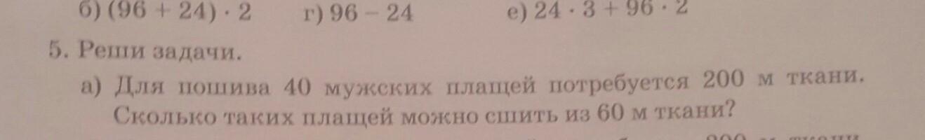 для пошива 40 мужских плащей потребуется 200 м ткани.Сколько таких плащей можно сшить из 60 м ткани.SOS SOS SOS срочно с УСЛОВИЕМ ДАМ 5 БАЛЛОВ И ПОСТАВЛЮ ЛУЧШИЙ