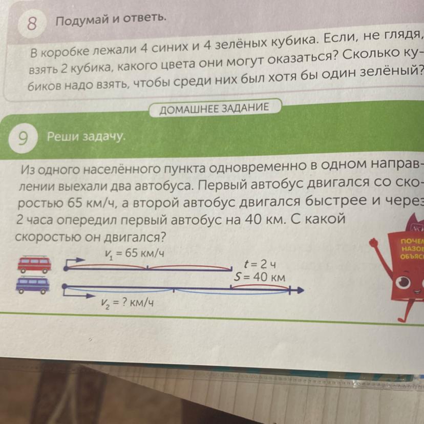 ростью 65 км/ч, а второй автобус двигался быстрее и через