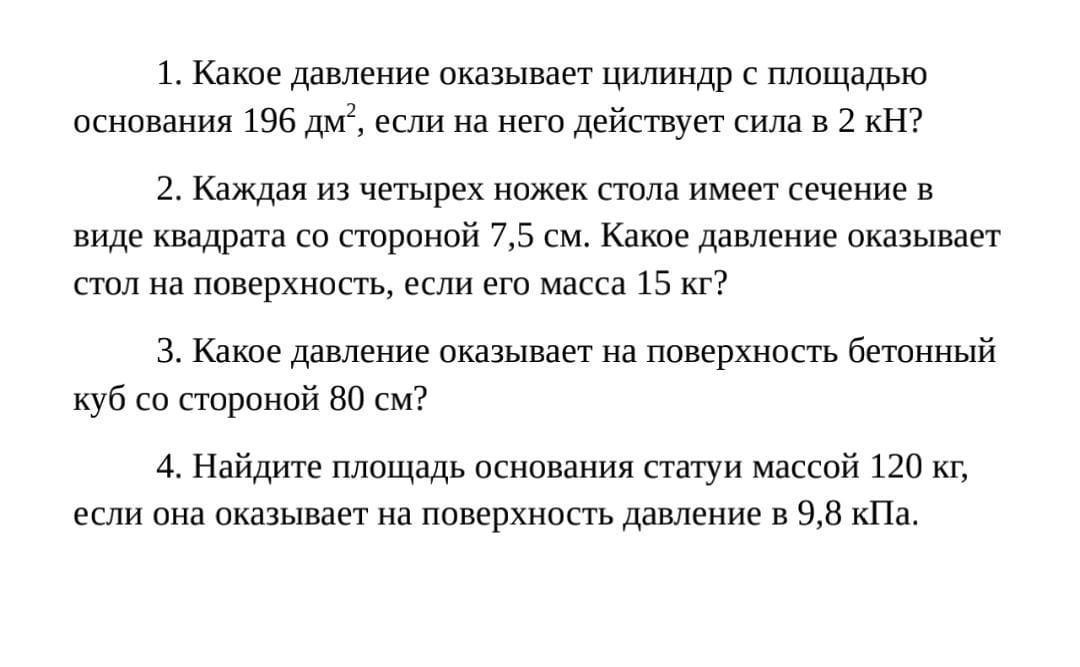 p = (15 кг · 10 Н/кг) / ((0,075 м)² · 4) =
