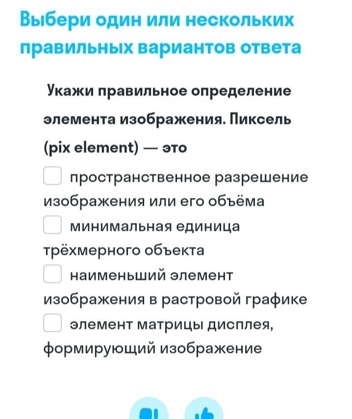 Ответ: Наименьший элемент изображения в растворовой графике!