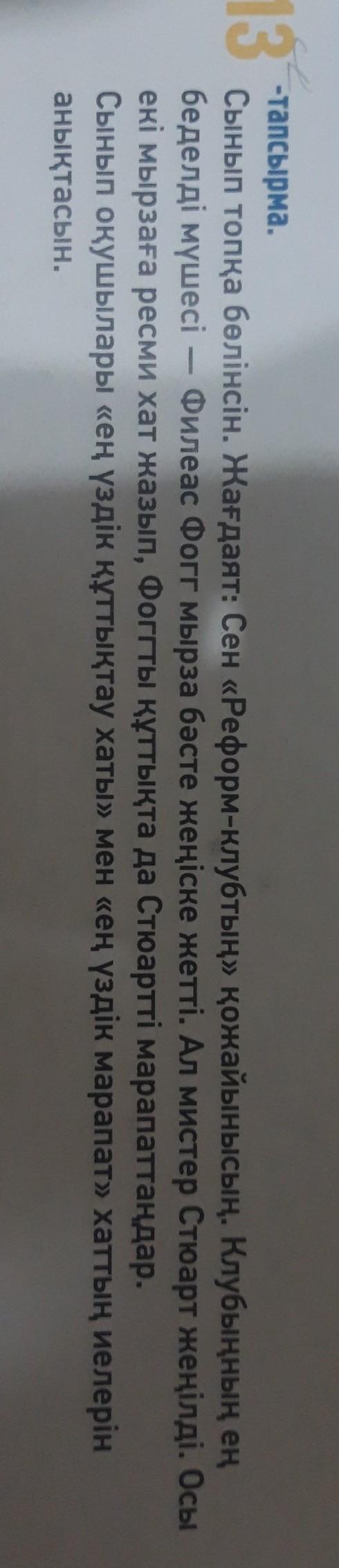 Сынып топқа бөлінсін. Жағдаят: Сен "Реформ клубының "қожайынының.