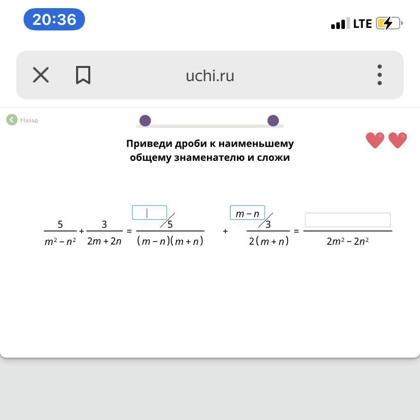10/2(m-n)(m+n) +3m-3n/2(m+n)(m-n)= 10+3m-3n/2m^2-2n^2