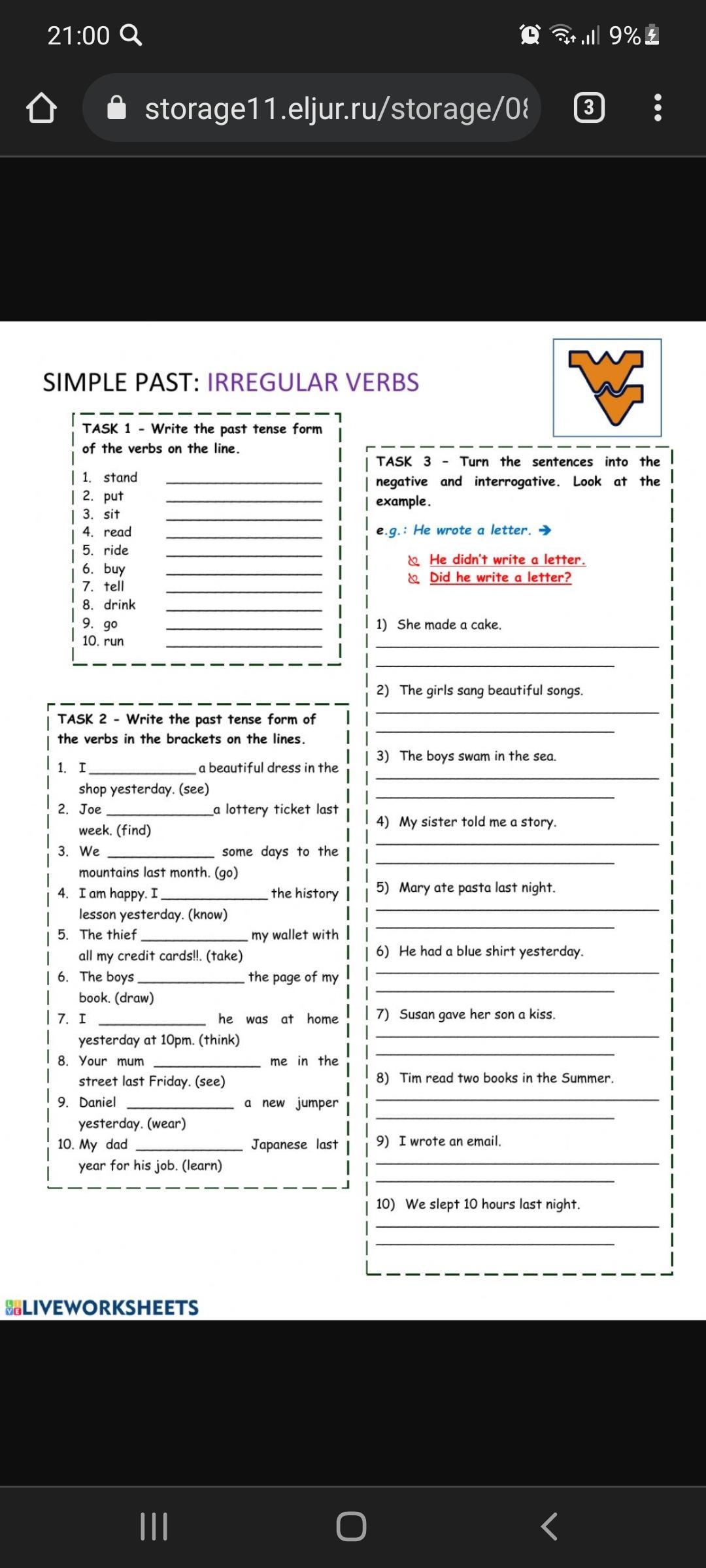 saw, found, went, took, drew, thought, saw, wore, learnt