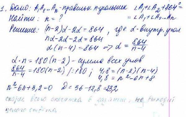 Найдите число сторон правильного многоугольника, если сумма двух его углов на 864° меньше суммы остальных углов.
