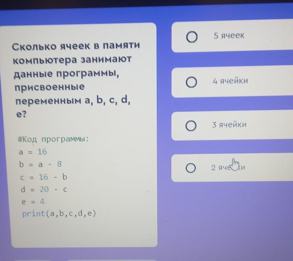 Для каждой переменной нужна одна ячейка. Соответственно 5 ячеек.