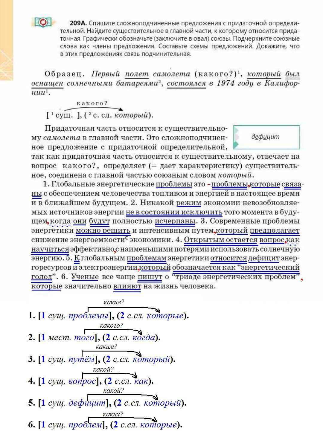 209A. Спишите сложноподчиненные предложения с придаточной определительной. Найдите существительное в главной части, к которому относится придаточная. Графически обозначьте (заключите в овал) союзы. Подчеркните союзные слова как члены предложения. Составьте схемы предложений. Докажите, что в этих предложениях связь подчинительная.