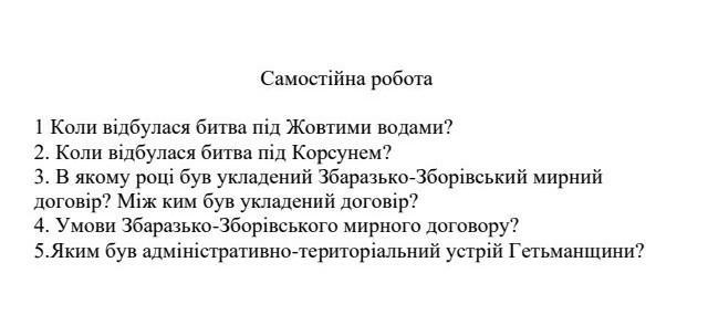 3.Збо́рівський до́говір (17 серпня 1649) — угода, укладена після Зборівської битви між королем Речі Посполитої Яном ІІ Казимиром з одного боку і Військом Запорозьким на чолі з гетьманом Богданом Хмельницьким