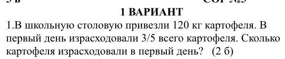 В первый день израсходовали (от общего количества картофеля), значит израсходовали