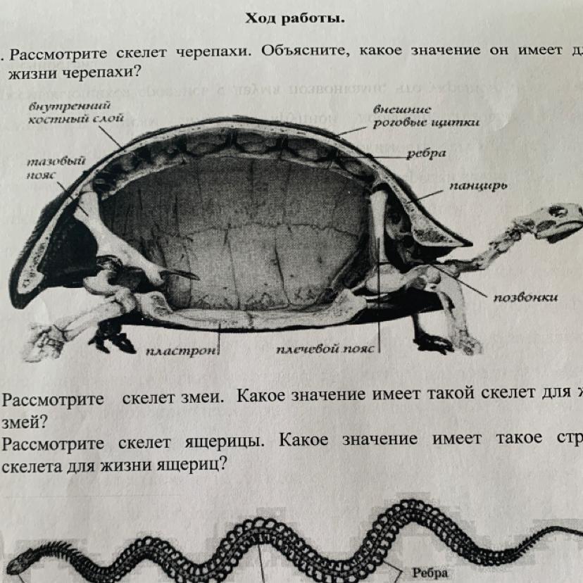 1. Рассмотрите скелет черепахи. Объясните, какое значение он имеет для