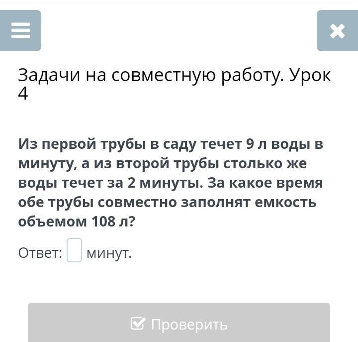 1)9/2=4,5-(мин)воды течёт из второго крана в минуту