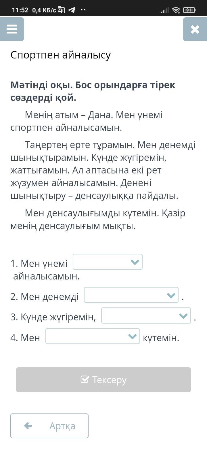 2)шынықтырамын 3)жаттығамын 4)денсаулығымды