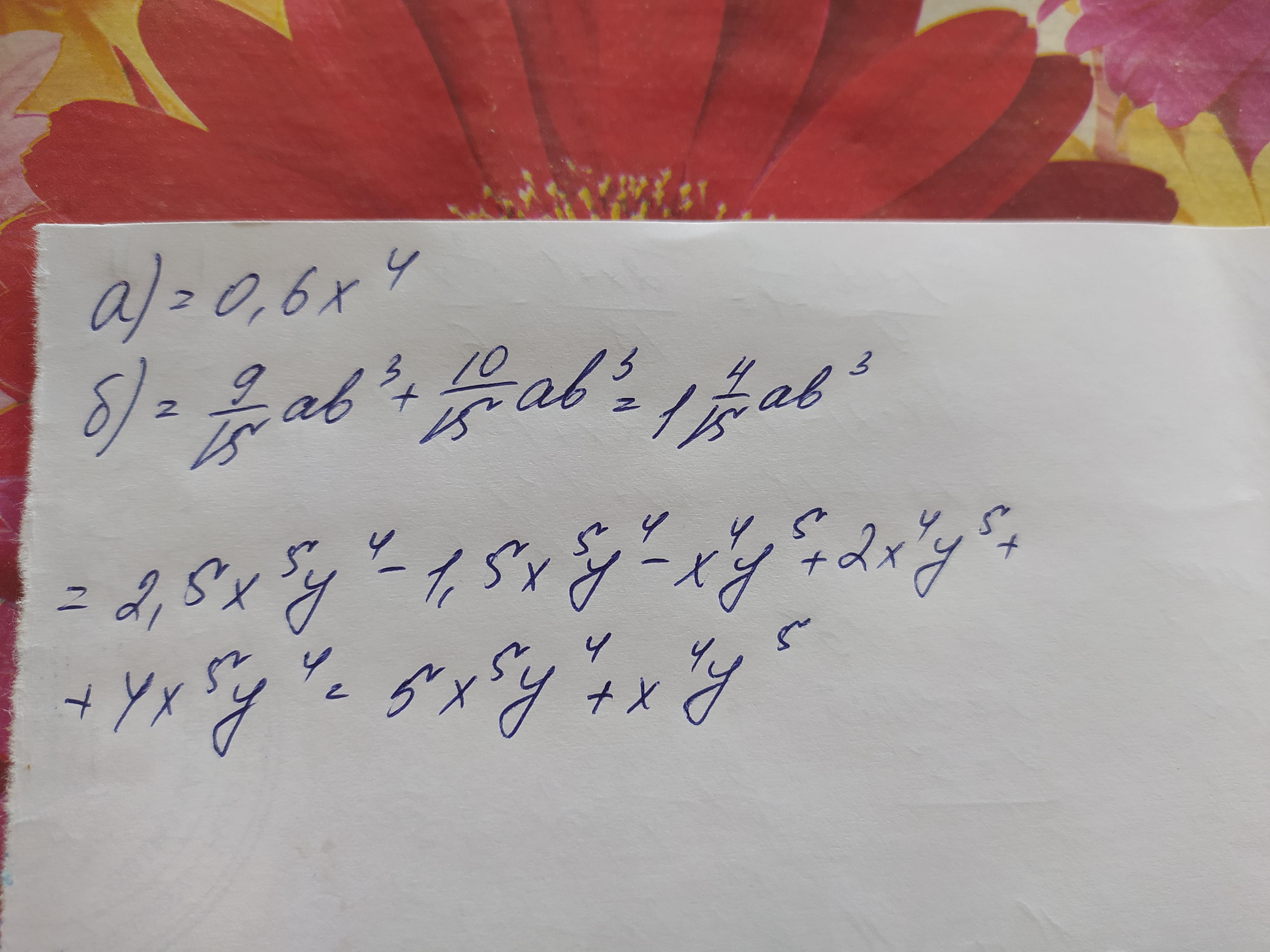 2,5х²ух³у³-1,5х⁵у⁴-х⁴у⁵+2х⁴у⁵+4х⁵у⁴