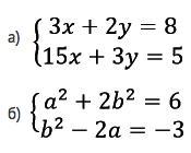 решения в файлах..., второе задание слишком сложное для обычных систем уравнений, которые изучают в средней школе, так что всё же советую спросить у учителя нет ли там опечатки