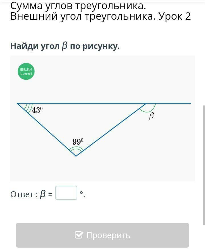 Внутренний и внешний углы смежные, следовательно, сумма равна 180°
