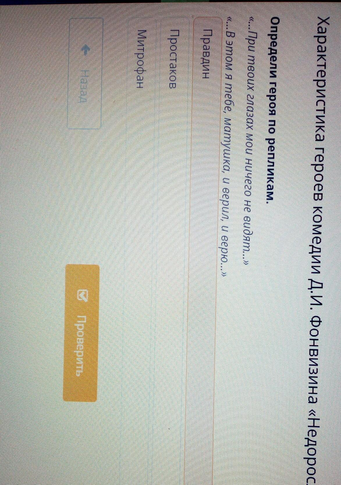 характеристики героев в комедии Фонвизина Недоросль Определи героя по репликам при твоих глазах мои ничего не видят в этом я тебе матушка верил и верю
