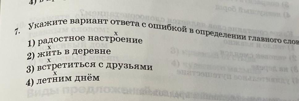 7. УКАЖИТЕ ВАРИАНТ ОТВЕТА С ОШИБКОЙ В ОПРЕДЕЛЕНИИ ГЛАВНОГО СЛОВА.