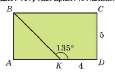 В прямоугольнике ABCD на стороне AD взята точка K (рис. 153), ∠BKD = 135°, KD = 4 см, CD = 5 см. Найдите площадь прямоугольника